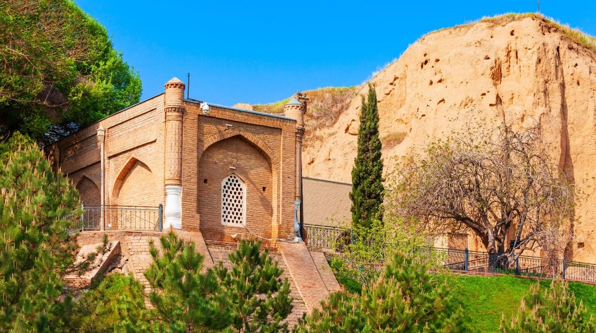 La necrópolis de Shakhi-Zinda es el centro religioso más importante de Samarcanda. La historia de este lugar está estrechamente vinculada a Qussam ibn Abbas, primo del profeta Muhammad. Él difundió el islam por toda Asia Central, pero fue asesinado y enterrado en este complejo arquitectónico. El complejo fue construido desde el siglo XI hasta comienzos del siglo XX. Esta necrópolis es un verdadero museo: una obra maestra de la decoración en mayólica y mosaico. Allí podrá disfrutar de los admirables mausoleos de Shirin-Beka y Shodi Mulk Oqa, del mausoleo de doble cúpula armoniosamente integrado, del arte singular de la mayólica en el mausoleo de Usta Ali Nasafi y de la puerta de madera original del mausoleo de Qussam ibn Abbas, donde se leen inscripciones como < Nuestra apariencia y carácter se parecen a los de Qussam ibn Abbas > y < Dios, por favor, no olvides a las personas con discapacidad y a los pobres >.